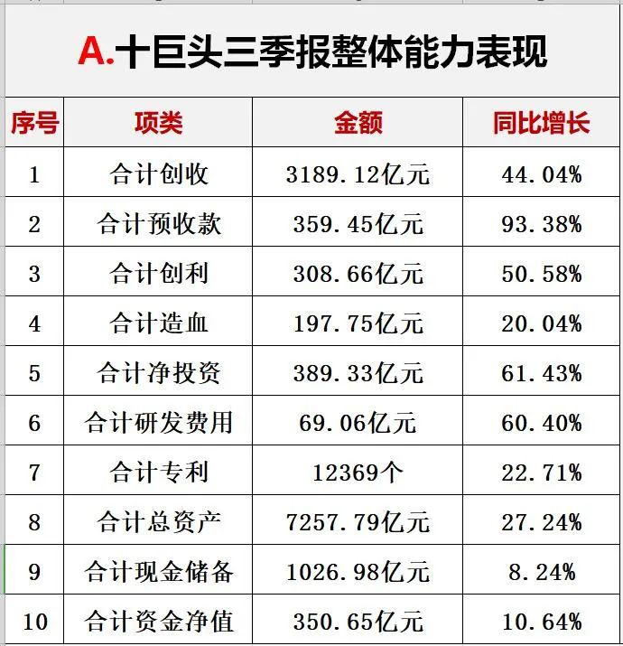 三.十巨頭2021三季報能力對比