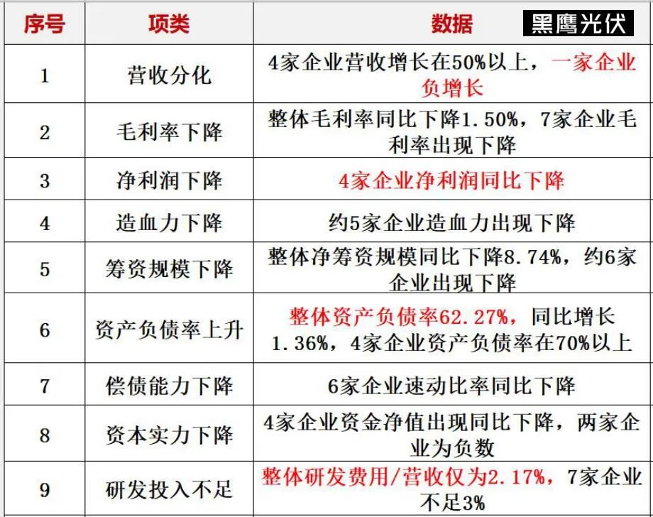 黑鷹光伏復盤了晶科能源、保利協(xié)鑫、阿特斯、隆基股份、特變電工、通威股份、中環(huán)股份、陽光電源、晶澳科技、天合光能等十大光伏巨頭過往五年半的核心經(jīng)營數(shù)據(jù),數(shù)據(jù)維度包括營收、凈利、毛利率、研發(fā)投入、資金實力、總負債與負債率等十大維度。各大企業(yè)近年的發(fā)展態(tài)勢,從這些數(shù)據(jù)中可見端倪。