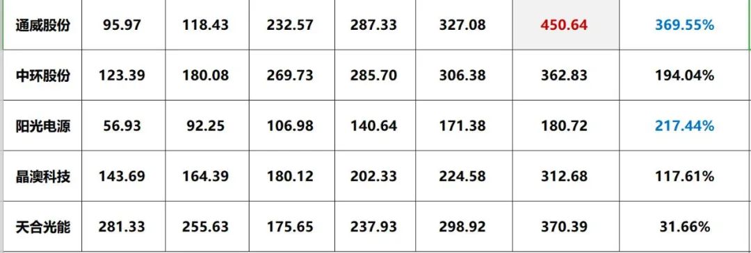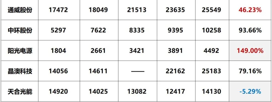 四.光伏巨頭五年核心經(jīng)營數(shù)據(jù)對比排行