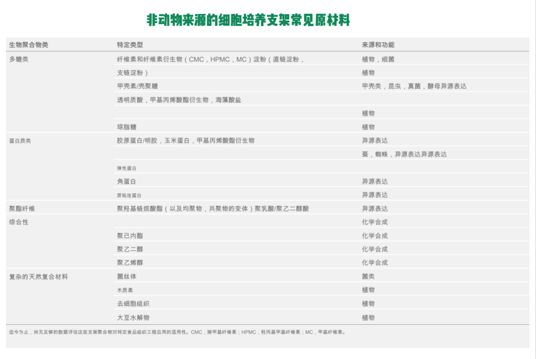 常見的非動物來源支架材料,圖片來源:FoodPlus