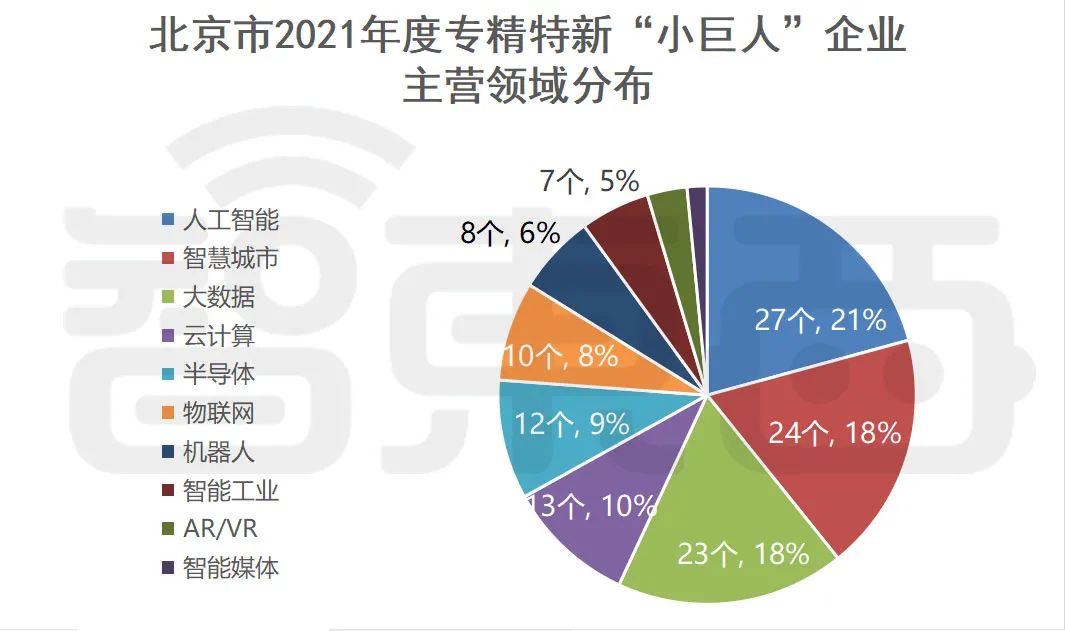 僅次于人工智能,在北京市專(zhuān)精特新“小巨人”中分布最多的是智慧城市企業(yè),達(dá)到24個(gè),占18%。