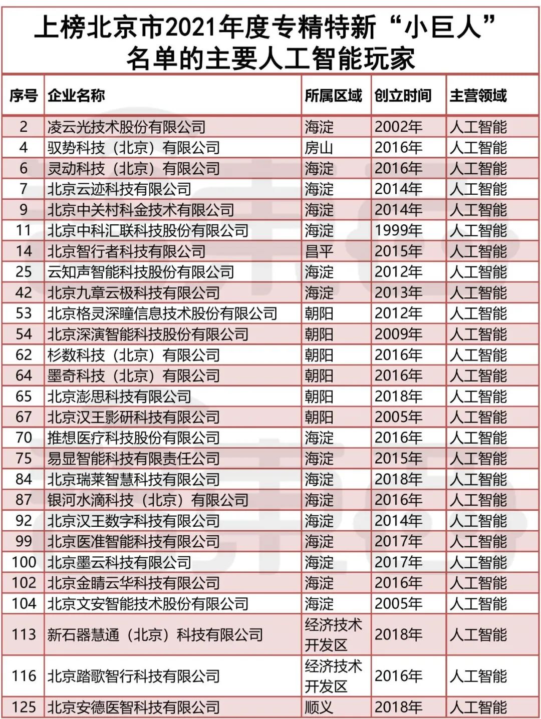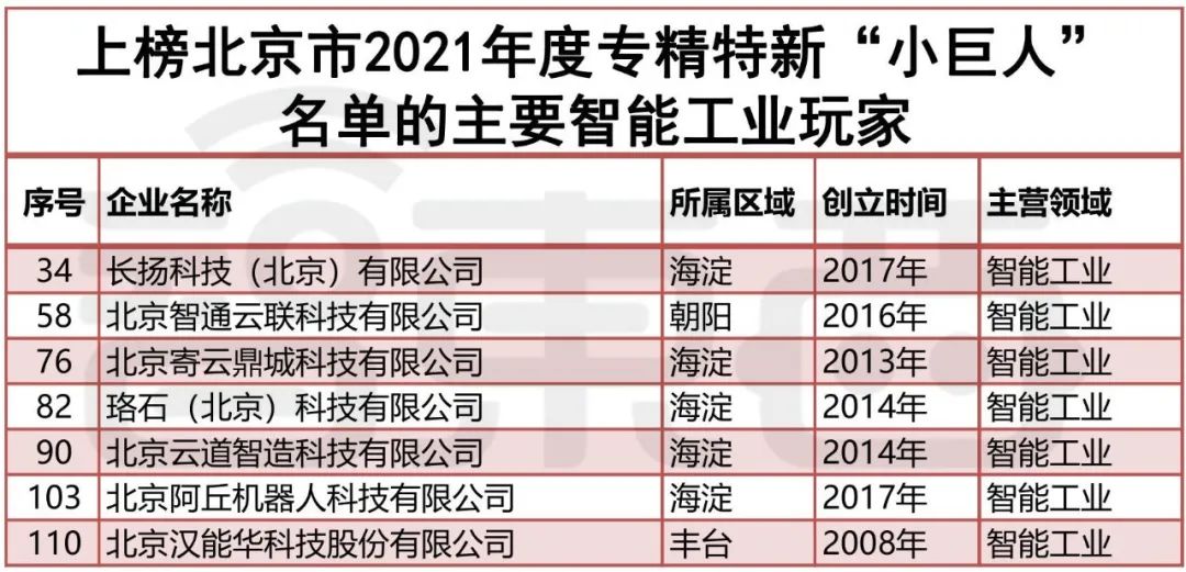 ▲北京專(zhuān)精特新“小巨人”企業(yè)中的智能產(chǎn)業(yè)玩家(排名不分先后)