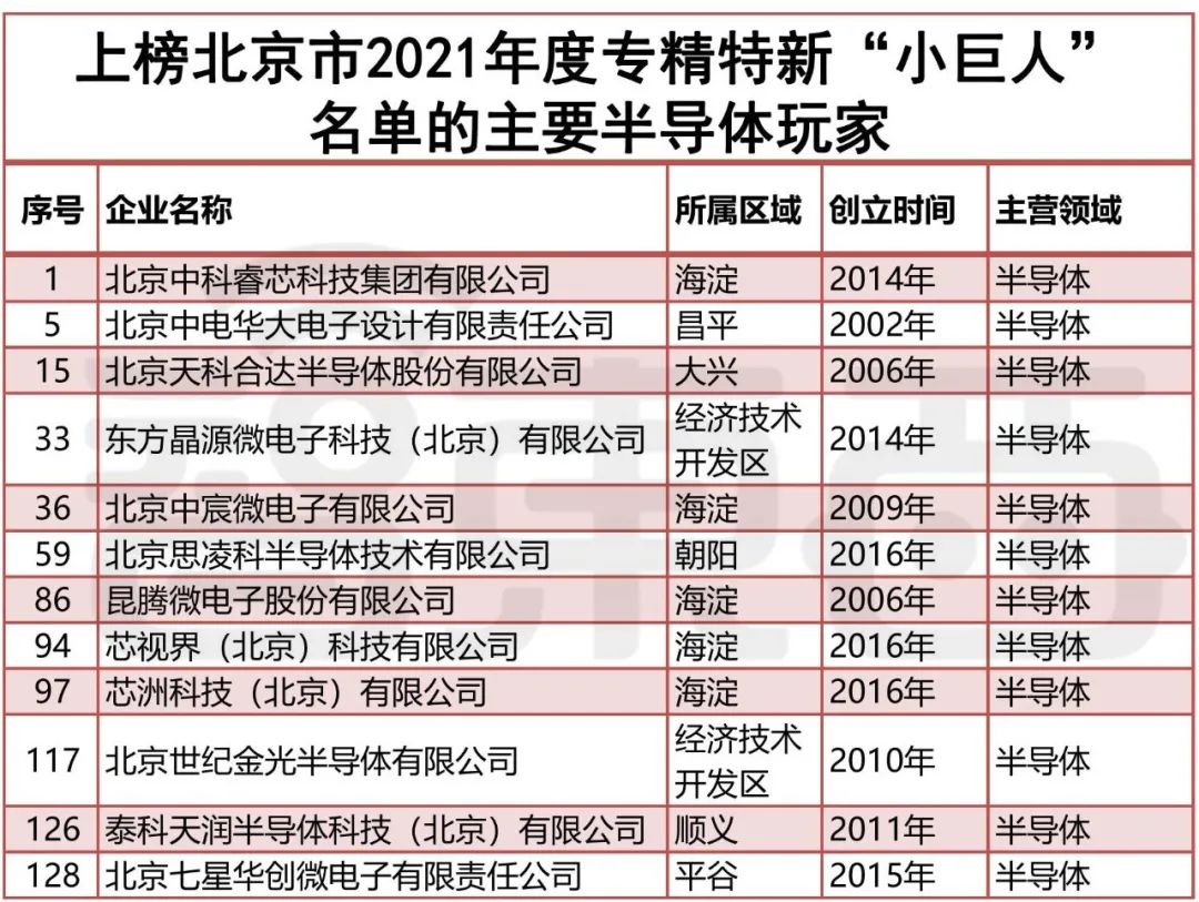 北京不是國(guó)內(nèi)半導(dǎo)體發(fā)展最壯大的地區(qū),但在北京2021年度專(zhuān)精特新“小巨人”中仍有12個(gè)半導(dǎo)體領(lǐng)域公司。也就是說(shuō)每十家智能產(chǎn)業(yè)企業(yè)中,就有一家是做半導(dǎo)體的。