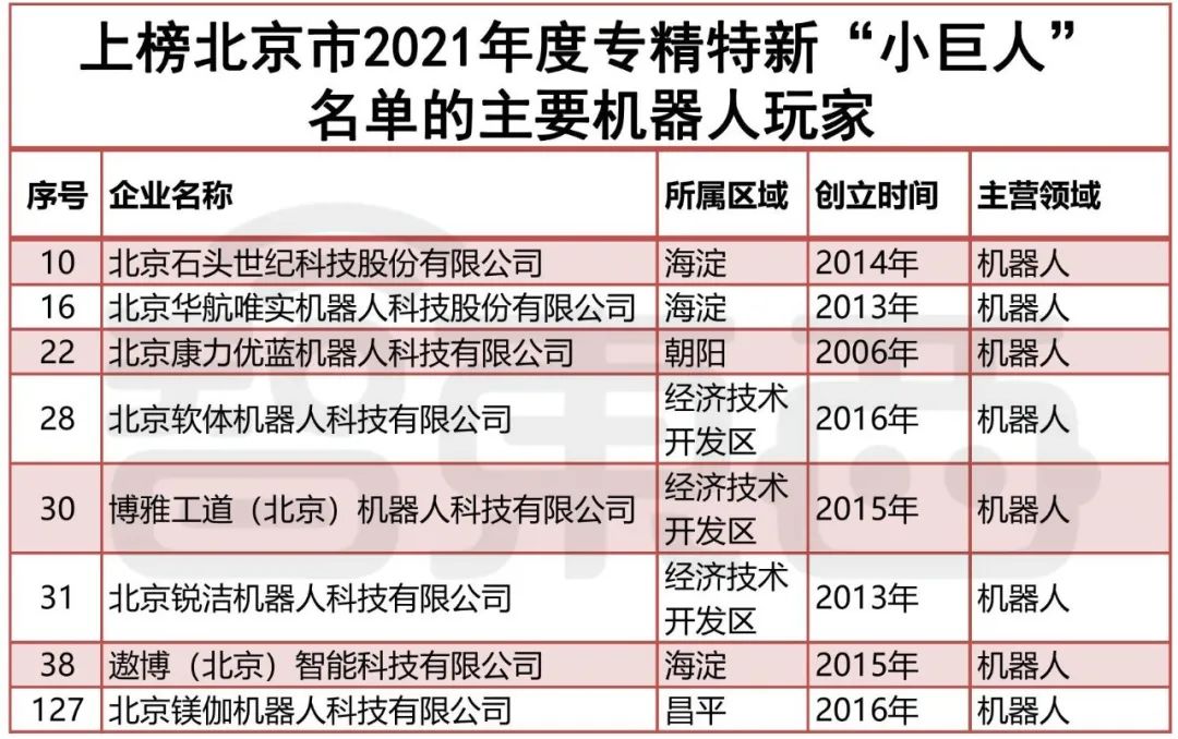 再來(lái)看看機(jī)器人領(lǐng)域,一共有8家企業(yè)登上2021年度北京專(zhuān)精特新“小巨人”名單。