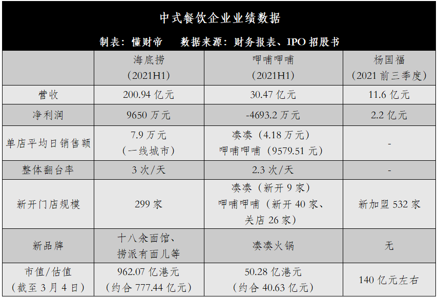 基于此,懂財(cái)?shù)圻x取了海底撈、呷哺呷哺、楊國福三家公司作為樣本標(biāo)的,希望與讀者們共同探討: