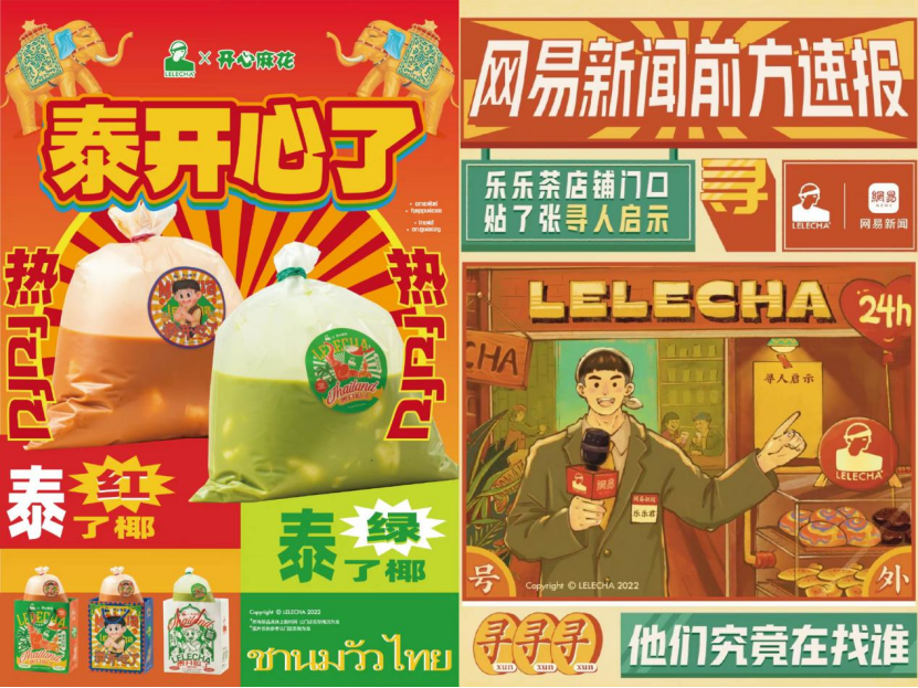 然后,茶飲品牌的跨界始終圍繞自身品牌調(diào)性。喜茶方面,跨界風格圍繞“現(xiàn)代、時尚”,設計感十分突出;奈雪的茶方面,聚焦跟藝術界跨界,還推出了自有IP奈雪CUP美術館,會不定期與藝術家進行合作;樂樂茶則是走“復古”風,比如跟網(wǎng)易新聞、開心麻花、不二家等品牌合作。
