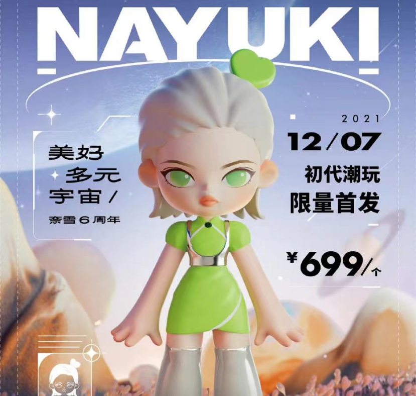 而奈雪的茶就是“試新”的第一梯隊。去年年底奈雪的茶在六周年之際宣布進軍元宇宙,打造“美好多元宇宙”,發(fā)布品牌的數(shù)字藏品,全網(wǎng)限量發(fā)行。同時還推出了首位虛擬品牌大使 NAYUKI,并發(fā)布NAYUKI潮玩實物。