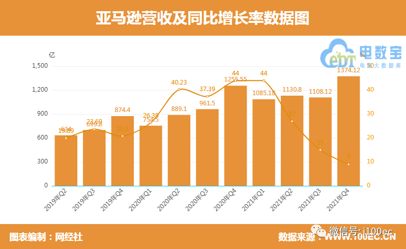 三、亞馬遜2021年營收4698億美元增長22%