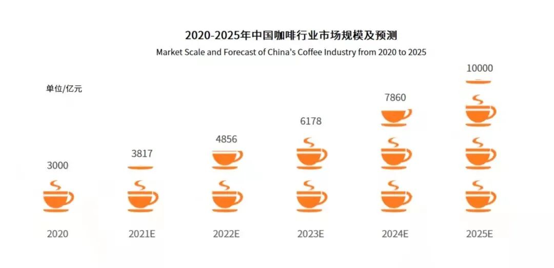 據(jù)艾媒咨詢數(shù)據(jù)顯示,2021年中國咖啡市場規(guī)模約3817億元,正進入高速發(fā)展階段,預計2025年,中國市場規(guī)模將達10000億元。