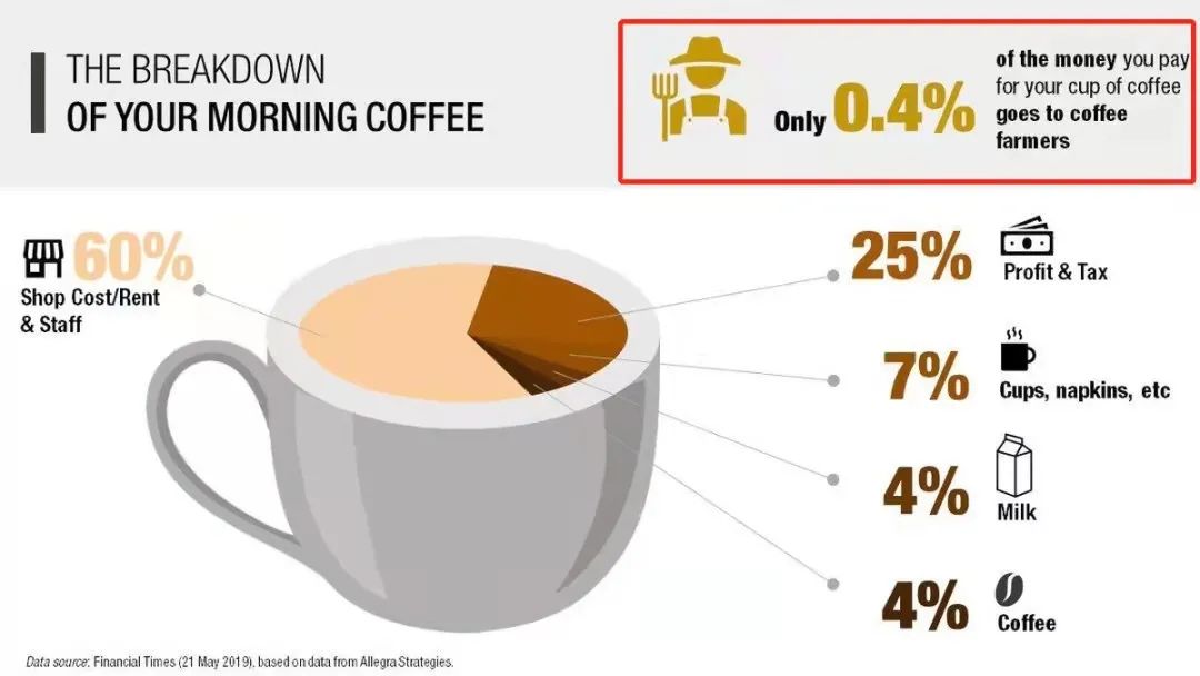 另據(jù)經(jīng)濟學家計算,一杯30元左右的咖啡,落到咖農手里的部分,竟然只有兩毛錢。而有了云南咖啡“做嫁衣”,跨國資本得以大肆擴張中國咖啡市場,賺得盆滿缽滿。