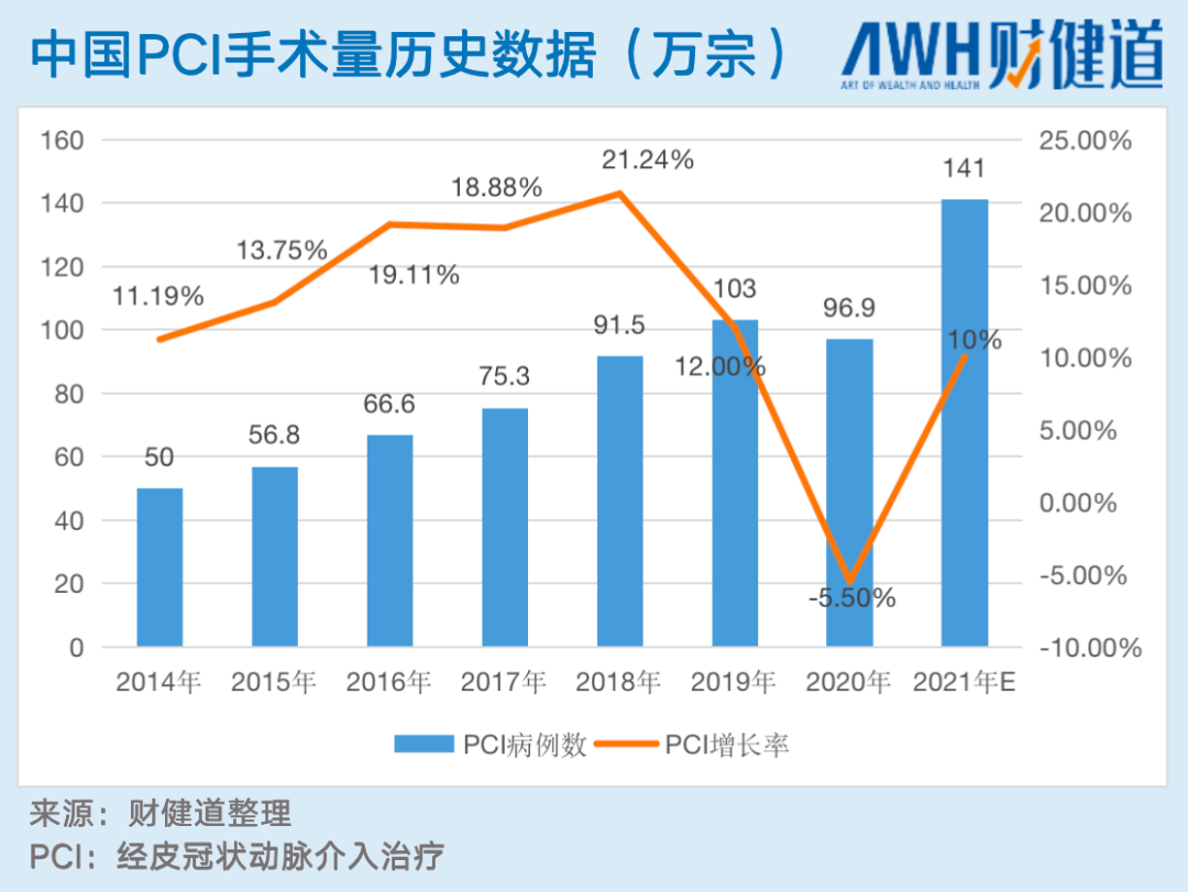 過度醫(yī)療中,冠脈支架是首當(dāng)其沖的重災(zāi)區(qū)。2000年,國內(nèi)冠狀動(dòng)脈介入手術(shù)(PCI)量僅有2萬臺(tái),但到了2019年,PCI手術(shù)已漲至109.8萬臺(tái),增長約50倍。以2018年為例,全國醫(yī)保總支出1.78萬億元,僅冠脈支架就占醫(yī)??傊С龅?%。PCI手術(shù)在國內(nèi)的過度增長,讓業(yè)內(nèi)知名醫(yī)生胡大一十分不安,不得不從最早在國內(nèi)推廣冠脈支架這項(xiàng)新技術(shù)的“冠脈支架之父”,搖身一變?yōu)榉磳?duì)濫用冠脈支架的先鋒。