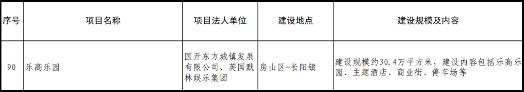 近期,在北京市發(fā)改委網(wǎng)站發(fā)布的“北京市2022年重點(diǎn)工程計(jì)劃的通知”中,樂高樂園被列為“文化旅游產(chǎn)業(yè)”新建項(xiàng)目,選址也從之前的房山區(qū)青龍湖鎮(zhèn)改為房山區(qū)長陽鎮(zhèn),建設(shè)規(guī)模約30.4萬平方米,包括樂高樂園、主題酒店、商業(yè)街、停車場等。