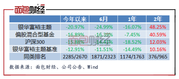 而2021年三季度開始,銀華富裕主題遭受重創(chuàng),三季度該基金凈值下跌17.23%,四季度又再次下滑6.89%。今年以來,銀華富裕主題下跌幅度更是超過20%,比業(yè)績(jī)基準(zhǔn)多跌了近8個(gè)百分點(diǎn),同類排名已處于末位梯隊(duì)。