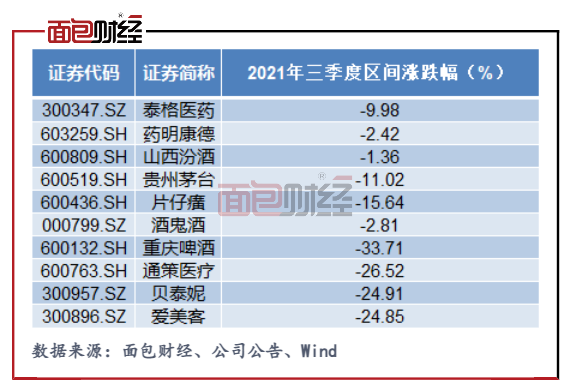 圖2:2021年三季報(bào)銀華富裕十大重倉(cāng)股區(qū)間漲跌幅