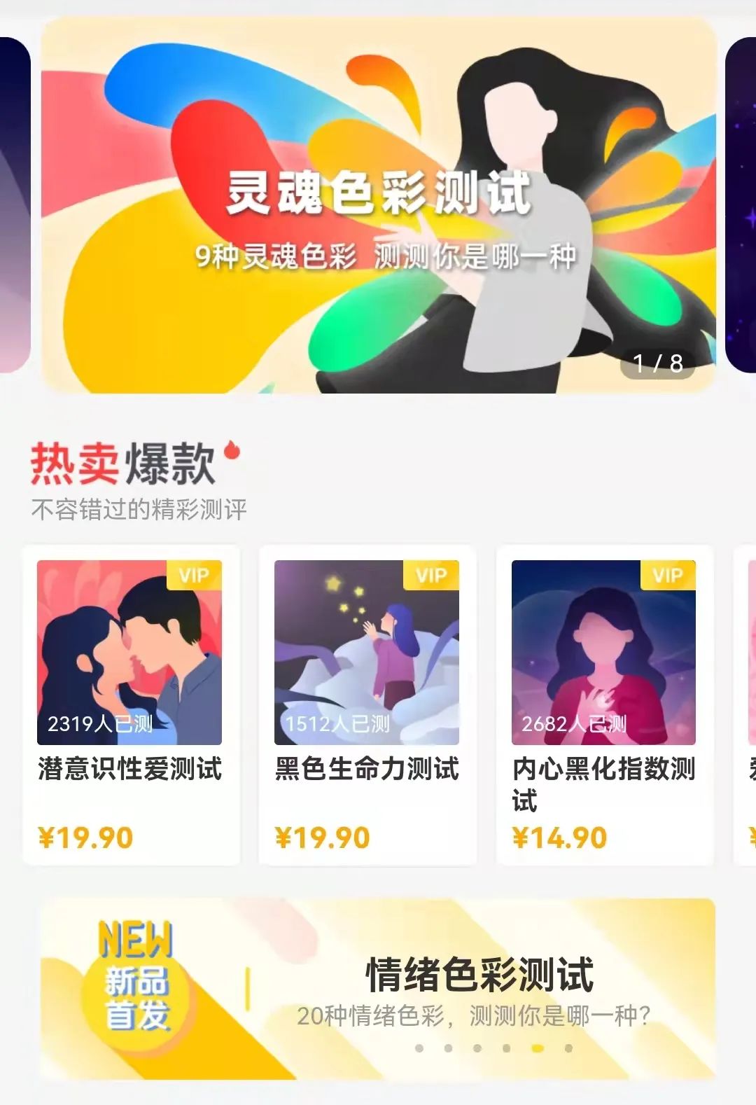 或許是抖音給你推送的心理平臺(tái)的測(cè)試廣告,“測(cè)測(cè)你的抑郁有多深?”“什么樣的異性更適合你?”“你的性格,適合什么樣的工作?”“測(cè)測(cè)你是哪方面的隱形天才?”,點(diǎn)進(jìn)去每項(xiàng)測(cè)試價(jià)格從9.9到幾十元不等。