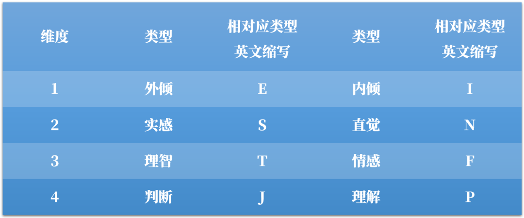 在諸多性格測(cè)試中,MBTI無疑是最為流行的,它由一位名叫凱瑟琳·布里格斯的美國人和她的女兒邁爾斯首創(chuàng)。MBTI性格測(cè)試設(shè)定了人們?cè)谠O(shè)別和判斷過程中四個(gè)維度的心理特征:內(nèi)傾/外傾、實(shí)感/直覺、理智/情感、判斷/理解。通過這四柄標(biāo)尺,將人群細(xì)分為十六種人格。