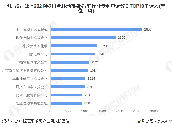 根據(jù)前瞻產(chǎn)業(yè)研究院發(fā)布的《中國(guó)新能源汽車行業(yè)市場(chǎng)前瞻與投資戰(zhàn)略規(guī)劃分析報(bào)告》顯示,全球新能源汽車行業(yè)專利申請(qǐng)TOP10申請(qǐng)人分別是豐田自動(dòng)車株式會(huì)社、現(xiàn)代自動(dòng)車株式會(huì)社、株式會(huì)社LG化學(xué)、國(guó)家電網(wǎng)公司、福特全球技術(shù)公司、北京新能源汽車股份有限公司、本田技研工業(yè)株式會(huì)社、比亞迪股份有限公司、起亞自動(dòng)車株式會(huì)社。