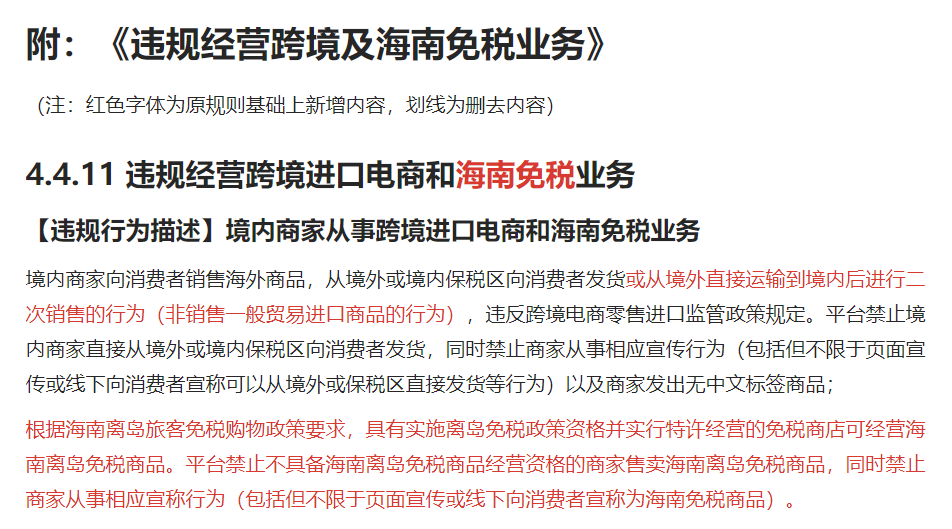 近日,抖音電商發(fā)布《商家違規(guī)行為管理規(guī)則》之《違規(guī)經(jīng)營跨境及海南免稅業(yè)務(wù)》更新公示通知,新增了“境內(nèi)商家不得從事海南免稅業(yè)務(wù)”的規(guī)定。該規(guī)范將于2022年3月31日生效執(zhí)行。