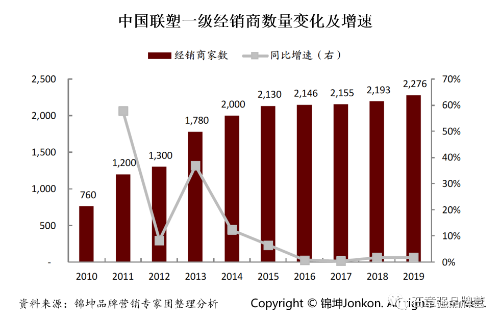 對此,我們可以看下與窗行業(yè)有著眾多相似之處的塑料管道行業(yè),同樣是集中度較低的輕資產(chǎn)行業(yè),進入門檻不高,小企業(yè)眾多,而中國聯(lián)塑則依靠在渠道的建設(shè),在2020年營收達到280億。我們可以對比看下中國聯(lián)塑的經(jīng)銷商數(shù)量,截止2019年底,中國聯(lián)塑擁有2276家一級獨家經(jīng)銷商,完善的經(jīng)銷商網(wǎng)絡(luò)布局也造就了其較強的拿單能力,形成更好的運行流程。