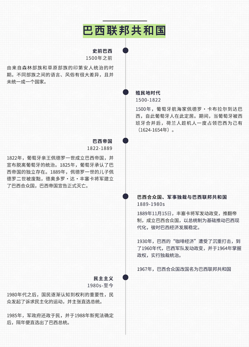 巴西聯(lián)邦共和國(guó),簡(jiǎn)稱(chēng)巴西,官方語(yǔ)言為葡萄牙語(yǔ),位于南美洲東南部,北鄰法屬圭亞那、蘇里南、圭亞那、委內(nèi)瑞拉和哥倫比亞,西鄰秘魯、玻利維亞,南接巴拉圭、阿根廷和烏拉圭,東瀕大西洋。國(guó)土面積約850萬(wàn)平方公里,是拉美最大國(guó)家,也是世界第五大國(guó)家。
