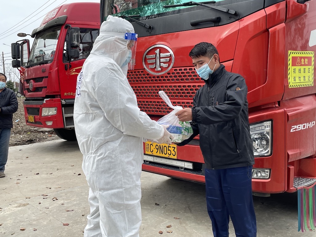 “為確保滯留在滬駕駛員的生活保障,我們配合亭林鎮(zhèn)鎮(zhèn)政府準(zhǔn)備了泡面、餅干、礦泉水等物資及時(shí)為他們進(jìn)行補(bǔ)給,并劃分區(qū)域指定洗漱、廁所地點(diǎn),進(jìn)行統(tǒng)一的管理?!?月1日下午,亭林派出所所長姜海組織民警為轄區(qū)30余名留滬駕駛員送上生活物資,并就近參加核酸檢測,對(duì)急需離滬駕駛員協(xié)調(diào)開展抗原檢測。