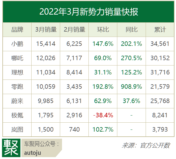 三月剛過(guò),多家造車(chē)新勢(shì)力紛紛公布了它們上月的成績(jī)單。