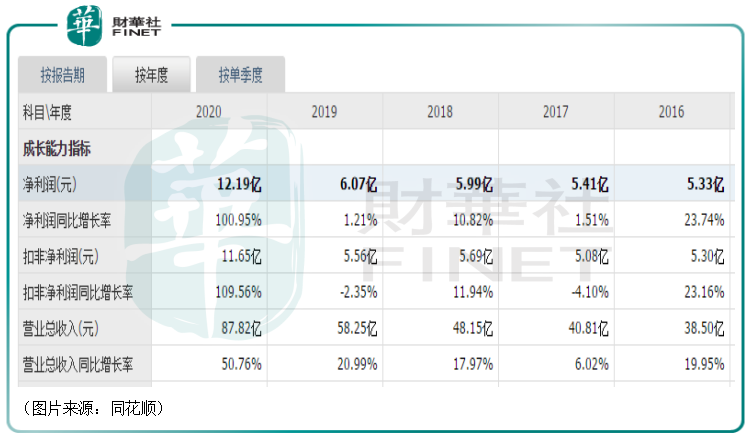 數(shù)據(jù)顯示,最近幾年,該公司的營收和歸母凈利潤在持續(xù)增長,尤其是在2020年,歸母凈利潤更是同比增長100.95%至12.19億元,直接上了一個(gè)臺(tái)階。