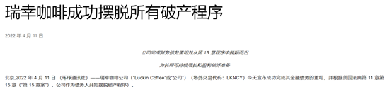 然而就在4月11日,瑞幸咖啡宣布已經(jīng)順利完成債務(wù)重組,正式結(jié)束作為債務(wù)人的破產(chǎn)保護程序。