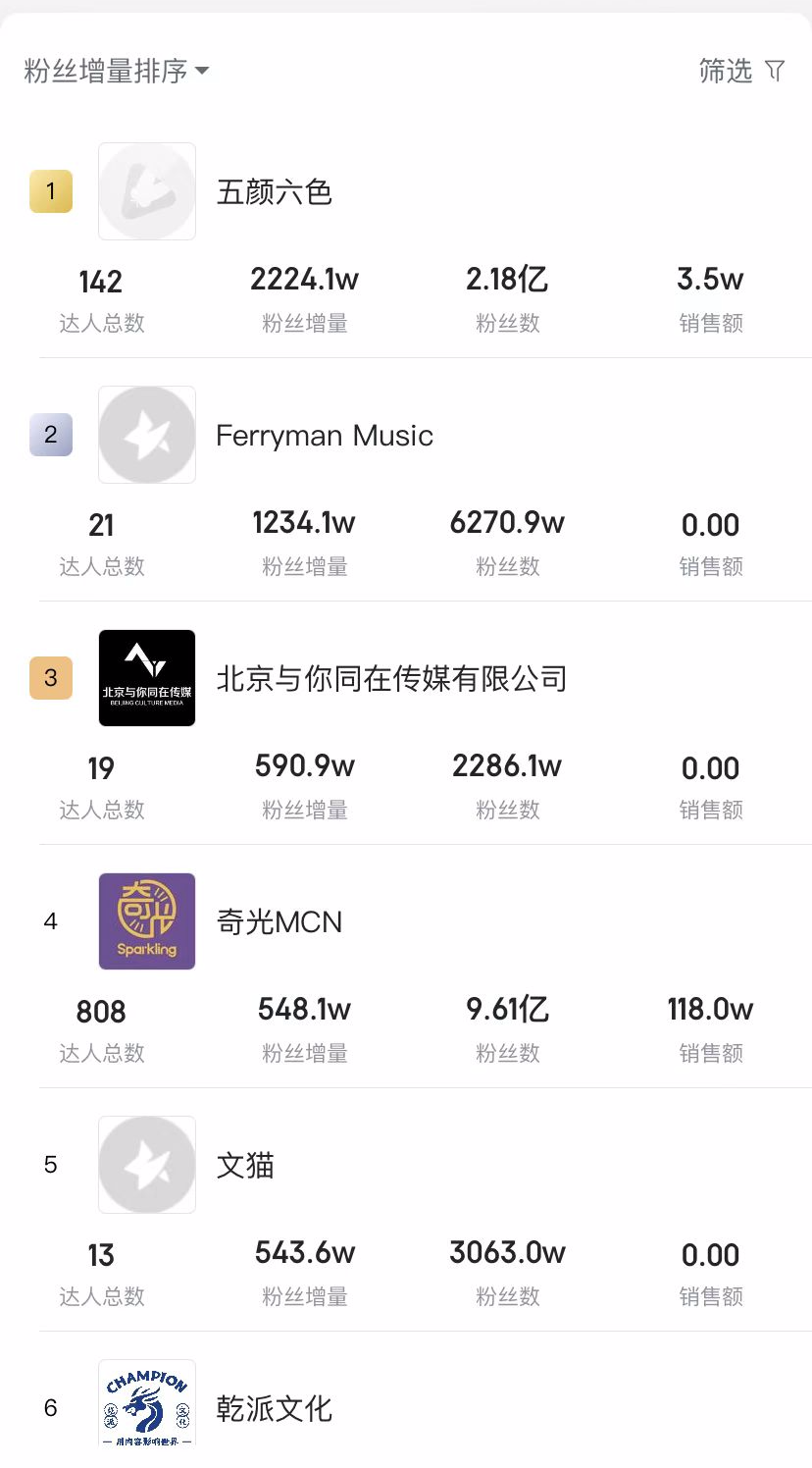 長沙某MCN機構負責人向輝(化名)旗下有9名主播,主要銷售本地土特產、零食及電子產品等。超過10萬粉絲的主播有5人,50萬粉絲主播1人。這樣的規(guī)模在抖音MCN機構里基本處于底層?!?我們不奢望能沖進TOP50,但曾經有幾次沖進了TOP100?!毕蜉x表示,現(xiàn)在這9名主播能達到日均萬元左右的銷售額已經是很了不起的成績了。