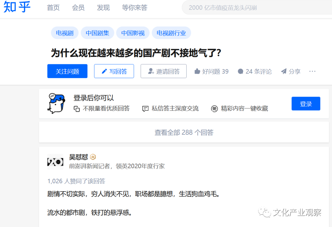 “為什么現(xiàn)在越來越多的國產(chǎn)劇不接地氣了?”這是知乎平臺上的一條熱議話題。