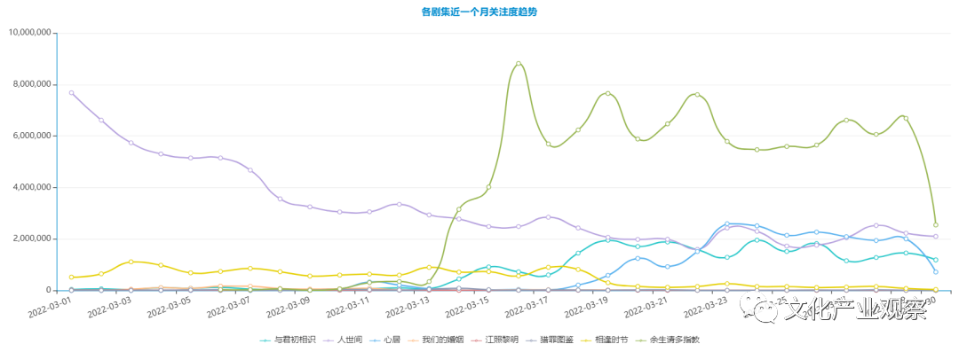 以今年第一季度的收獲高收視率影視劇為例。2022年截至目前收視率和口碑都表現(xiàn)亮眼的高質(zhì)量作品——《人世間》,不僅在播出時每天都是收視冠軍,直至劇播完,《人世間》在市場的占有率仍高達15.3%,甚至傳播至海外市場,被迪士尼購買了版權(quán)。