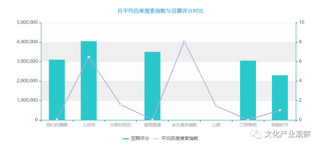 通過數(shù)據(jù)可視化分析,可以發(fā)現(xiàn)這8部劇集中僅有《人世間》一部達成了高熱度和高評分兼得的好成績,而搜索指數(shù)高的劇常常在微博里掀起“熱烈”討論、劇情視頻也被有目的性地截取傳遞到微博等網(wǎng)絡(luò)平臺,但在實際的觀看量和口碑上卻不盡人意。