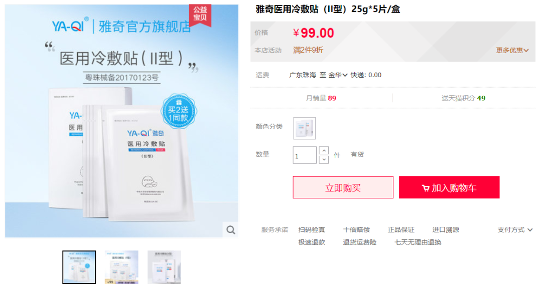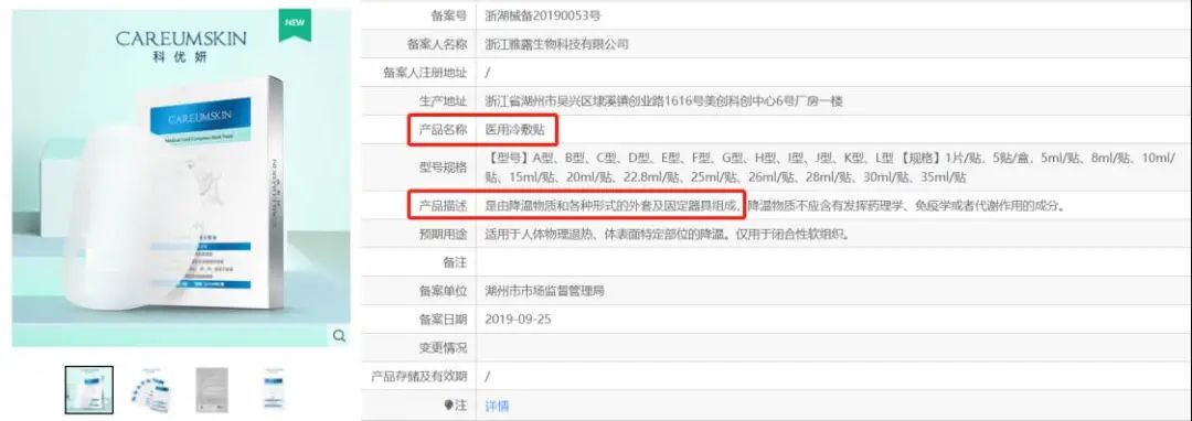 經過幾年的市場教育和積累,醫(yī)用冷敷貼在消費者中的認知已經在一定程度上成型,加上產品暴利,即使過去一年監(jiān)管趨于嚴格,也還是會有品牌不愿意放棄醫(yī)用冷敷貼帶來的利潤,試圖以“妝字號”備案的方式繼續(xù)賺錢。