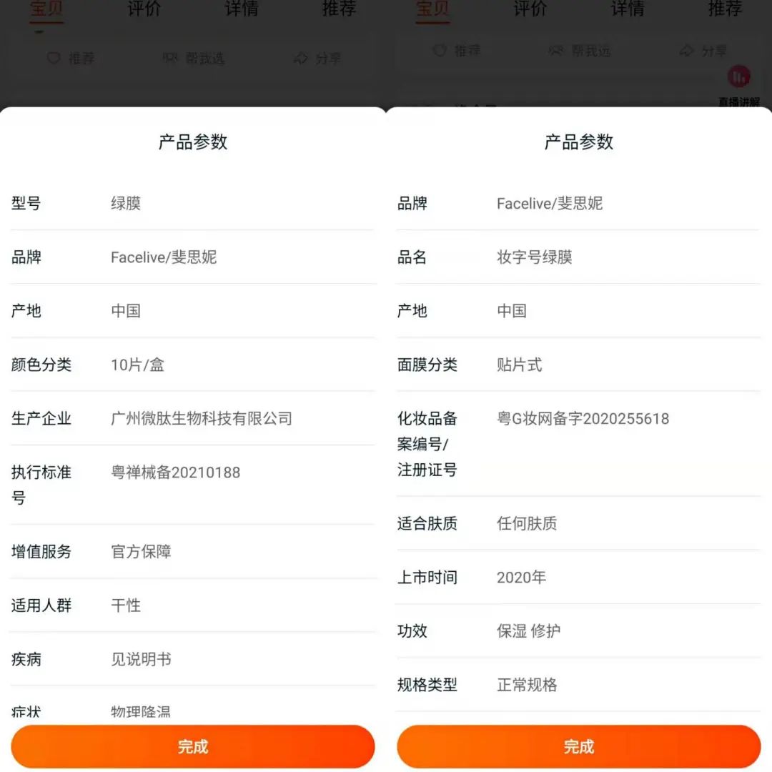 另外,在產品詳情的問答小課堂中,對于“妝字號版本與械字號版本有什么區(qū)別?”這一問題,官方給出的回答也為“妝字號的產品與械字號的不同,只是備案字號的區(qū)別,主要為了滿足成分愛好者的需求和應對市場變化,所以出了妝字版;妝字號產品成分標注明顯,械字號依照國家法規(guī)不標注,成分及膜布都是一樣的,可以放心購買。”