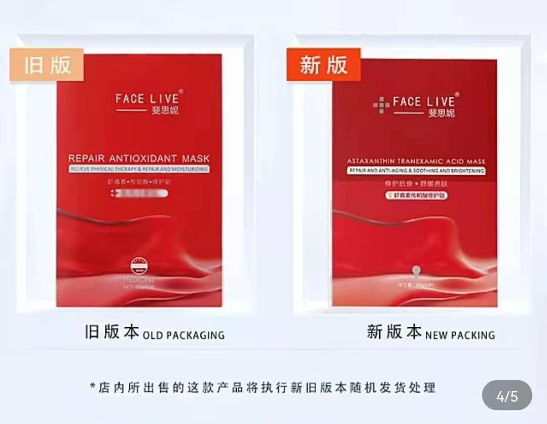 同樣的“換皮”套路,斐思妮早在今年“大限日”之前就用過。去年,斐思妮以“產品升級”的名義,上線了包裝幾乎一模一樣的“妝字號”蝦青素傳明酸修復貼和“械字號”的醫(yī)用冷敷貼產品。