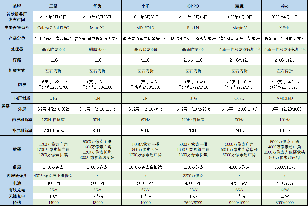 主流折疊屏配置參數(shù)對(duì)比 制表:洞見新研社