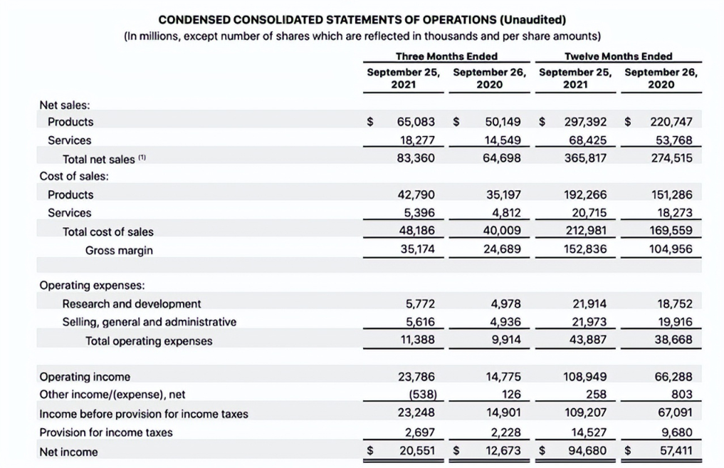 由于收入增長放緩,蘋果的凈收入同比大幅增長。COVID-19 相關(guān)增長加速了其中的一部分,但該公司已獲得近 950 億美元的凈收入,或 FCF 收益率約為 3%。該公司的運營費用增加了 10%,但受到凈銷售額增長 30% 的支持。