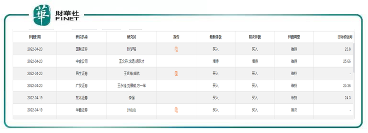 結(jié)合機(jī)構(gòu)的看法,共有6家機(jī)構(gòu)在近3日給出了正面評級(見下表):5家買入、1家增持。綜合來看,上述6家機(jī)構(gòu)給出的目標(biāo)價區(qū)間在23.8-25.66元。