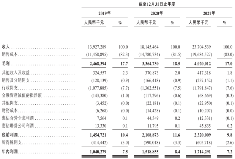 財務(wù)數(shù)據(jù)顯示,2019-2021年,萬物云實現(xiàn)營業(yè)收入分別為139.27億元、181.45億元和237.05億元,年內(nèi)利潤分別為10.4億元、15.19億元、17.14億元,業(yè)績整體保持了持續(xù)增長勢頭。