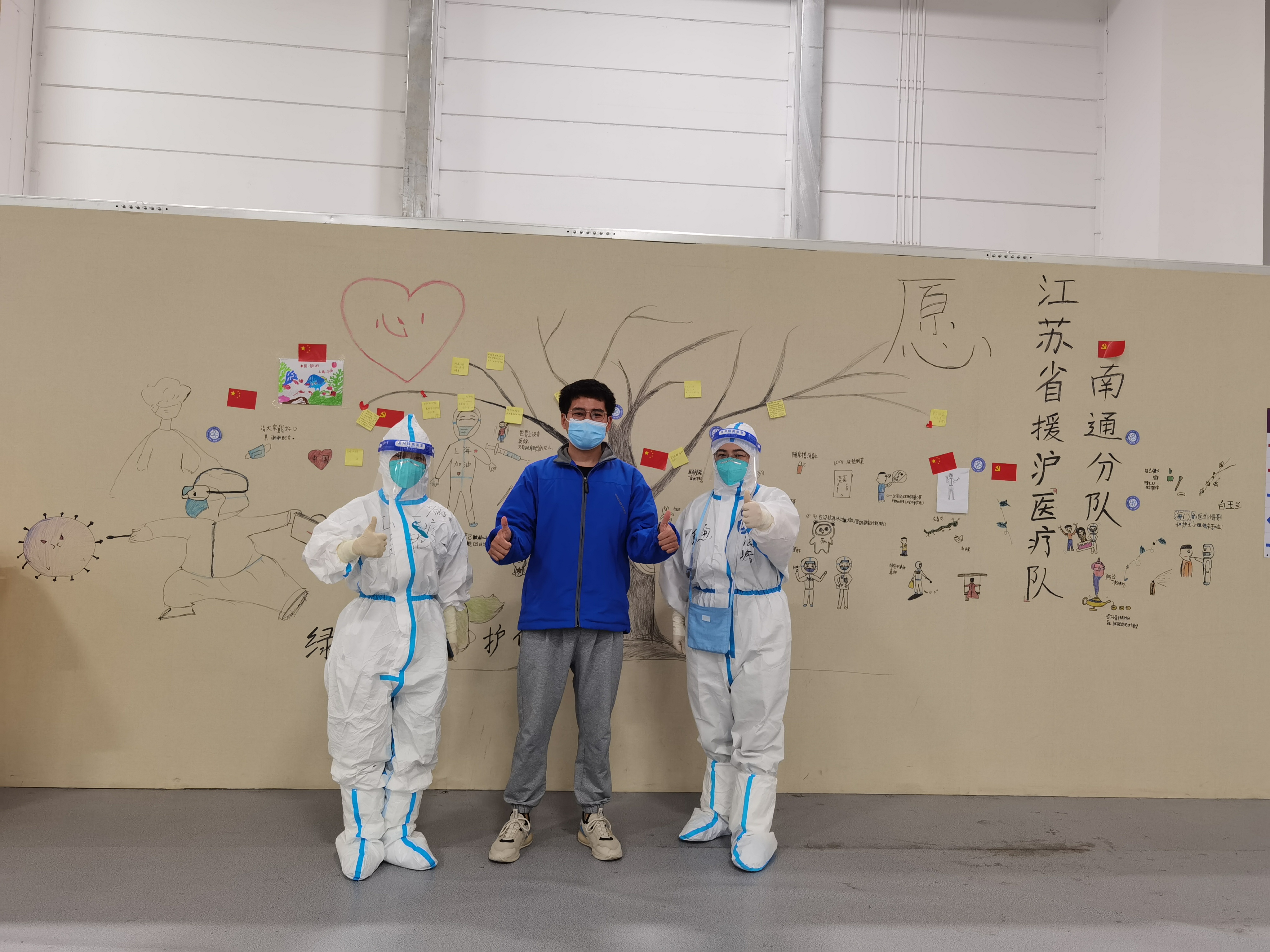 為了給病友創(chuàng)造一處放松、傳遞溫暖的公共空間,在征得院方同意后,他攜手醫(yī)護人員在艙內(nèi)布置了一面“守滬墻”,專門用于投放防疫知識和心愿祝福,隨著創(chuàng)作出的畫作越來越多,方艙內(nèi)的活力與溫馨也與日俱增。他的熱情奉獻,在方艙內(nèi)播撒了一股向善的力量,溫暖著身邊人。
