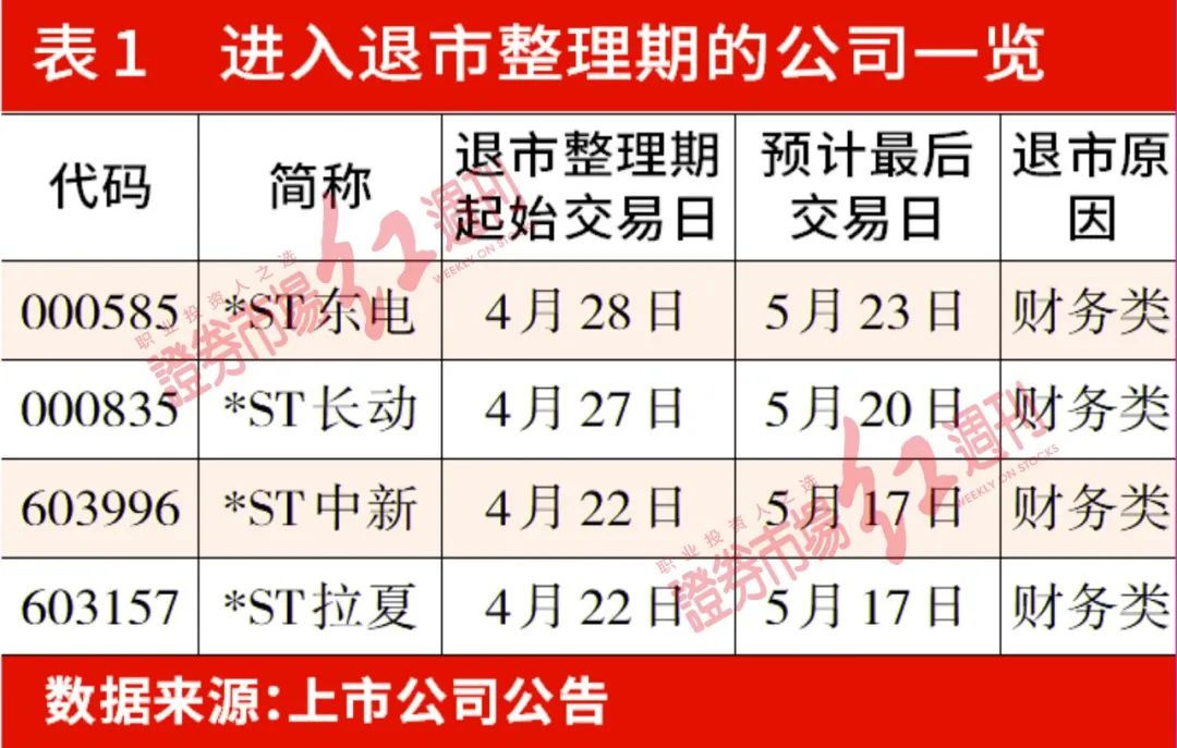 相比過(guò)去兩年,今年的退市股票數(shù)量有望進(jìn)一步增長(zhǎng)。據(jù)《紅周刊》統(tǒng)計(jì),截至目前,*ST艾格、退市新億、*ST東電等6家公司已經(jīng)或正在退市當(dāng)中。