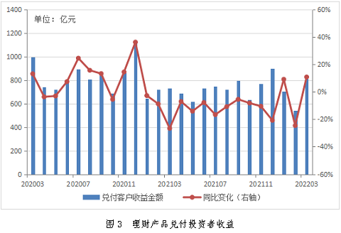 從理財(cái)產(chǎn)品兌付情況來(lái)看,一季度,理財(cái)產(chǎn)品兌付投資者收益2058億元,同比下降1.81%。其中,理財(cái)公司兌付投資者收益1004億元,同比增長(zhǎng)1.81倍,銀行機(jī)構(gòu)兌付投資者收益1054億元。