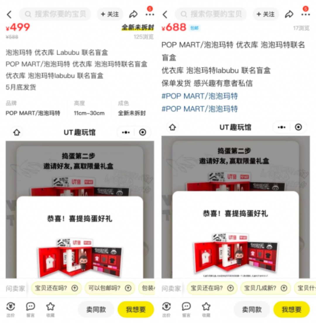 趕在五一小長假前,優(yōu)衣庫與泡泡瑪特的聯(lián)名款UT上架發(fā)售。