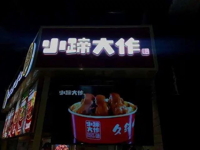 在北京合生匯購物中心的21街區(qū)深夜食堂,于眾多攤位中一眼便能發(fā)現(xiàn)“小蹄大作”這幾個字,盡管這是一個面積不大的攤位,但名字很搶眼。諧音梗名稱配合碩大的豬蹄圖片,引人不禁想要買個烤豬蹄。