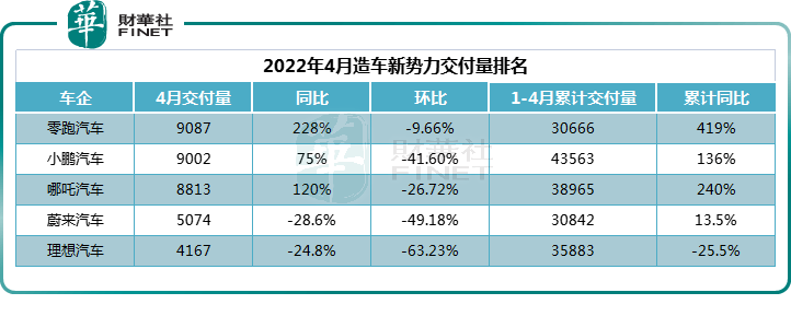 受疫情反復(fù)和供應(yīng)鏈影響,對(duì)于仍處在成長(zhǎng)期、抗風(fēng)險(xiǎn)能力較弱的造車新勢(shì)力來講,4月無疑是一場(chǎng)“倒春寒”。