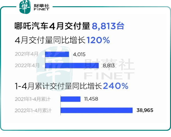 哪吒汽車在售車型中,哪吒V貢獻(xiàn)了超6成的銷量,4月交付5694輛,同比增長(zhǎng)48%;而哪吒U則交付3119輛,同比增長(zhǎng)1746%。