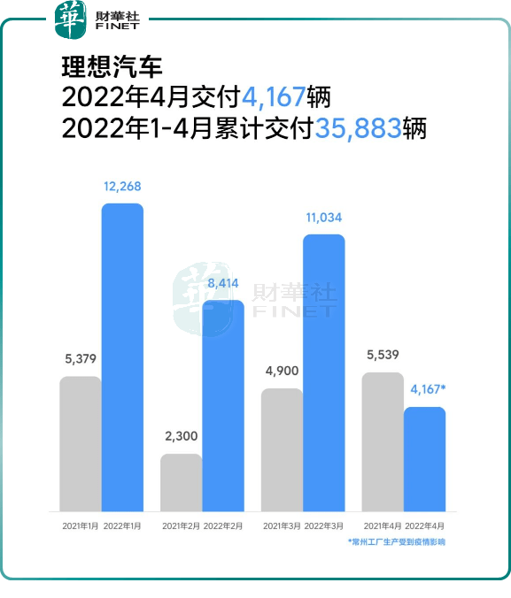 理想汽車,4月共交付4167輛理想ONE,同比下滑24.8%,環(huán)比下降達(dá)63.23%,刷新今年以來交付量新低。自交付以來,理想ONE累計(jì)交付量達(dá)159971輛。