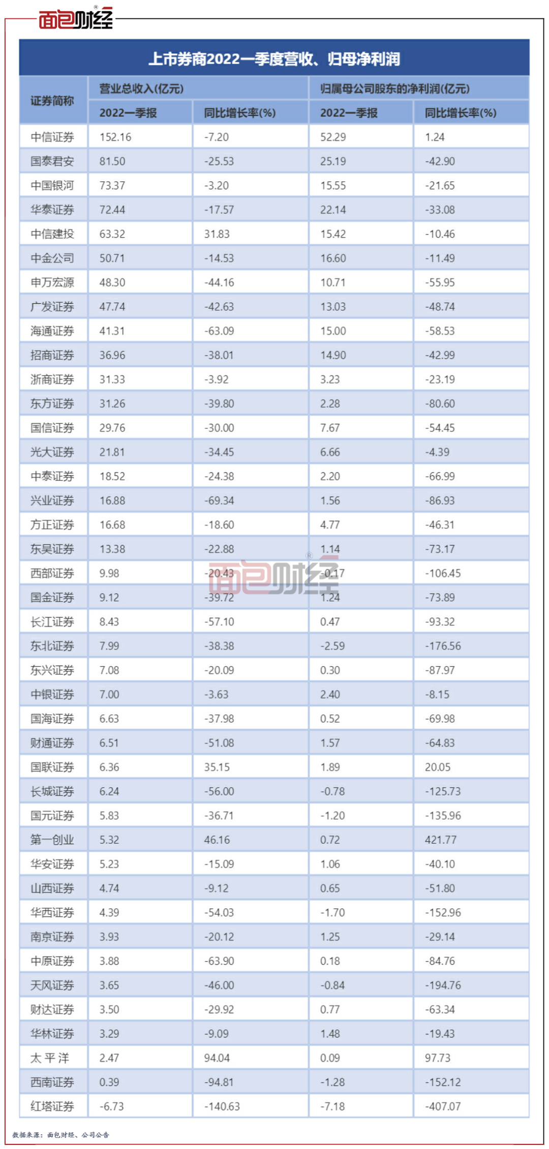 2022年一季度上市券商業(yè)績(jī)整體下滑,頭部券商業(yè)績(jī)萎縮