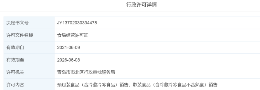 直到2021年3月1日,其經營范圍才變更為食品經營等業(yè)務,2021年6月9日才取得食品經營許可證。