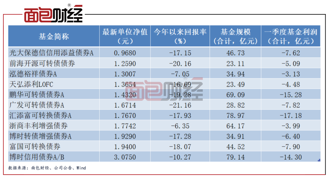 其中,廣發(fā)基金旗下的廣發(fā)可轉(zhuǎn)債債券回撤排名靠前,年內(nèi)回撤超21%,前海開源、鵬華基金旗下產(chǎn)品也大幅虧損;光大保德信信用添益?zhèn)膯挝粌糁底畹停巡蛔?元;匯添富可轉(zhuǎn)換債券成為一季度“虧損王”,總虧損約17億元。